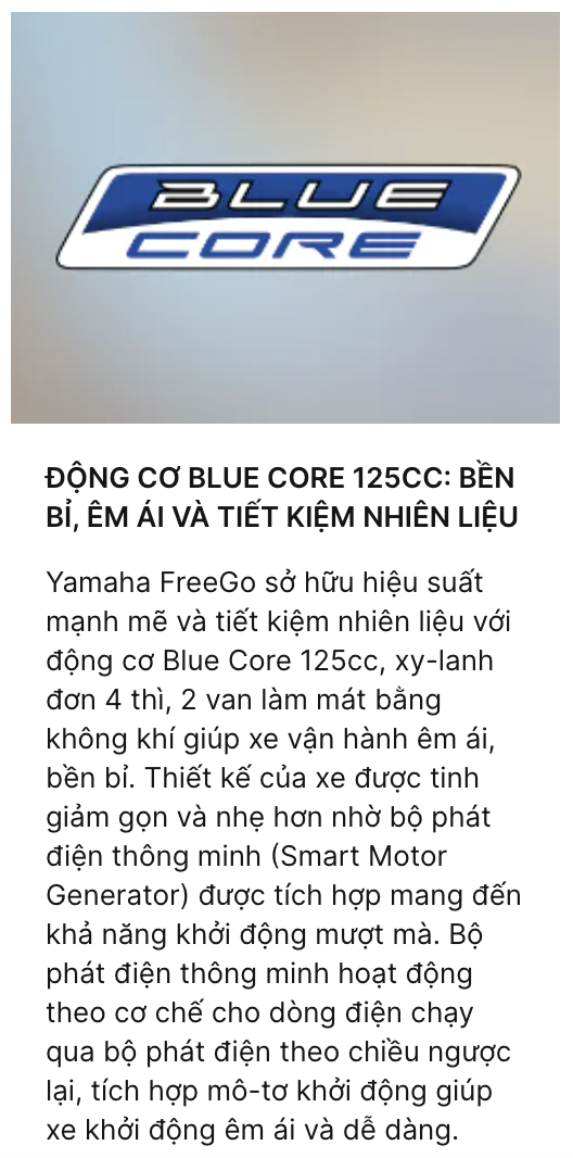 Xe máy Freego Yamaha là mẫu xe tay ga thể thao đời mới có mức giá rất hợp lý, được trang bị toàn diện các tính năng như: khóa thông minh Smart Key, phanh ABS, cốp xe rộng 25 lít, tích hợp cộng sạc điện thoại tiện lợi...