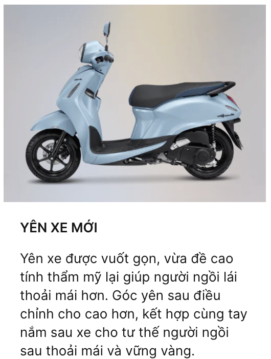 Với thiết kế thời trang, thanh lịch và thiết kế cốp xe siêu rộng 27 lít, Yamaha Grande còn là mẫu xe tay ga tiết kiệm xăng số 1 Việt Nam với mức tiêu thụ chỉ 1,66 lít/100km, theo số liệu thống kê được Cục Đăng kiểm Việt Nam công bố, xác nhận bởi Báo Giao thông.(*)
