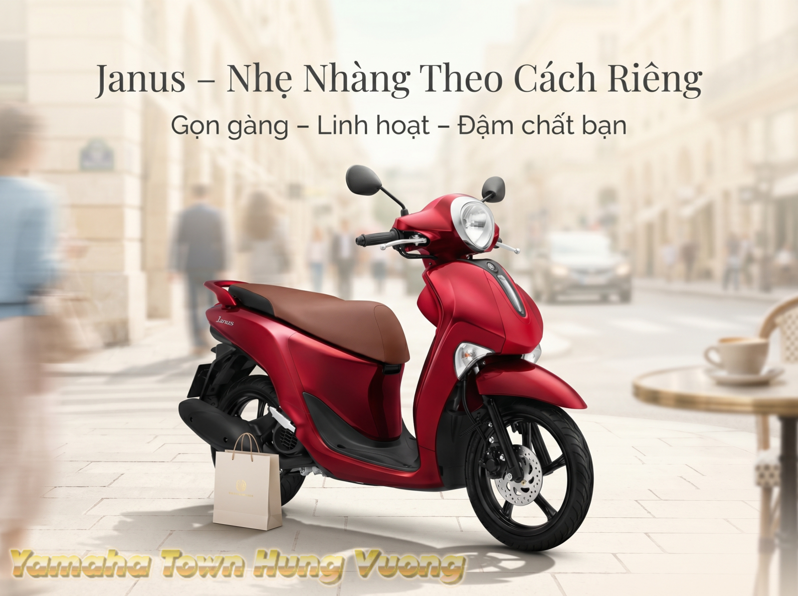 Ngược lại, nếu bạn định nghĩa sự cá tính bằng vẻ đẹp tinh tế và sự linh hoạt, Yamaha Janus lại là một lựa chọn đầy cảm hứng. Nhiều bạn trẻ chia sẻ với Hưng Vượng rằng, họ chọn Janus vì nó nhẹ nhàng như một món phụ kiện thời trang. Giữa những con phố đông đúc của thành phố, sự gọn gàng của Janus giúp bạn thảnh thơi hơn, gạt đi nỗi lo về những lần dắt xe nặng nề hay những khúc cua hẹp.