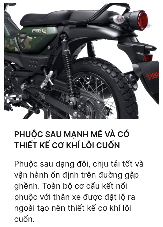 Yamaha PG-1 ABS mới dành cho thế hệ yêu tự do và đam mê dịch chuyển. Với thiết kế mang phong cách scrambler pha retro - hiện đại, PG-1 ABS mới khiến mỗi chuyến đi của bạn đều trở thành hành trình tận hưởng, từ phố thị đến ngoại thành, kết nối trọn vẹn với những sắc màu văn hóa trong cuộc sống hằng ngày.