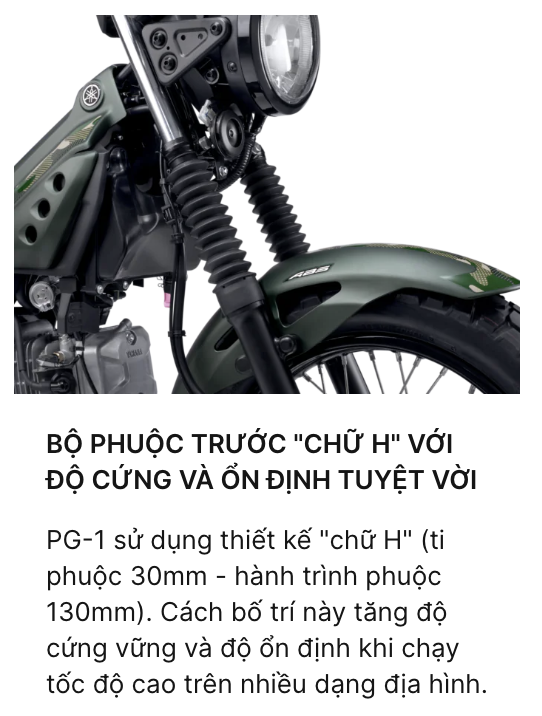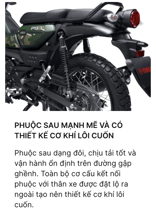 Yamaha PG-1 ABS mới dành cho thế hệ yêu tự do và đam mê dịch chuyển. Với thiết kế mang phong cách scrambler pha retro - hiện đại, PG-1 ABS mới khiến mỗi chuyến đi của bạn đều trở thành hành trình tận hưởng, từ phố thị đến ngoại thành, kết nối trọn vẹn với những sắc màu văn hóa trong cuộc sống hằng ngày.